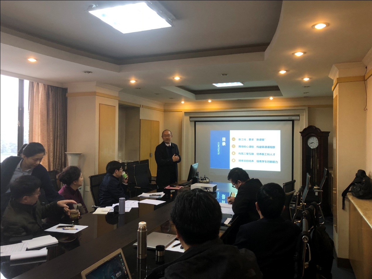 的张祖涛教授也对团队的MOOCs课群建设情况进行了汇报,教务处姬晓旭科长代表教务处对该项目给予了大力支持,并就财务报销和组织实施环节给予了指导性意见。报告结束后,与会者就新工科的内涵、新工科专业建设、MOOCs建设与应用等项目相关内容进行了充分研讨。该研讨会将在2019年3月再次进行,届时将邀请企业人员一起研讨新工科人才培养模式。通过系列研讨会的汇报和交流,必能促进该项目的顺利实施